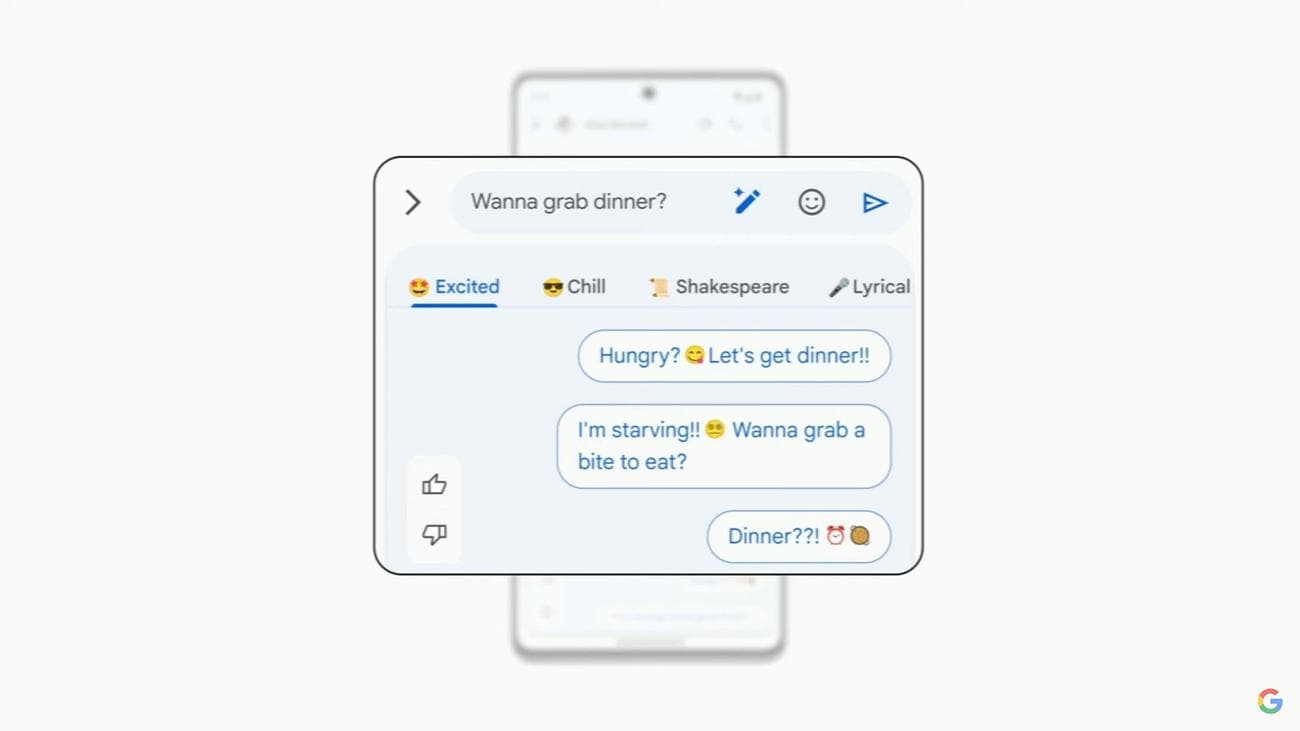 Google also introduced a new feature that combines Android’s guided customization with its advances in generative AI to help people compose more personal messages. The feature, called Magic Compose, can be used within conversations in Google Messages to rewrite texts in different styles. For instance, you can set the text to sound more positive or more professional — or, for fun, to sound as if Shakespeare wrote it.