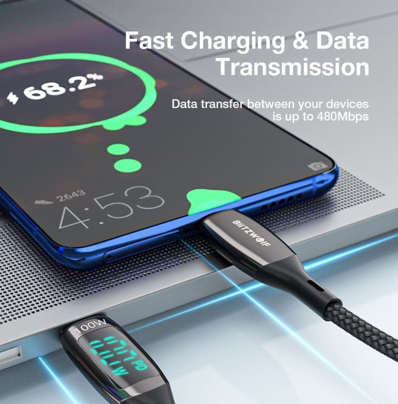 BlitzWolf BW-TC23: Type C to Type C καλώδια 100W με ένδειξη V/A και κόστος απο 5.5€ !