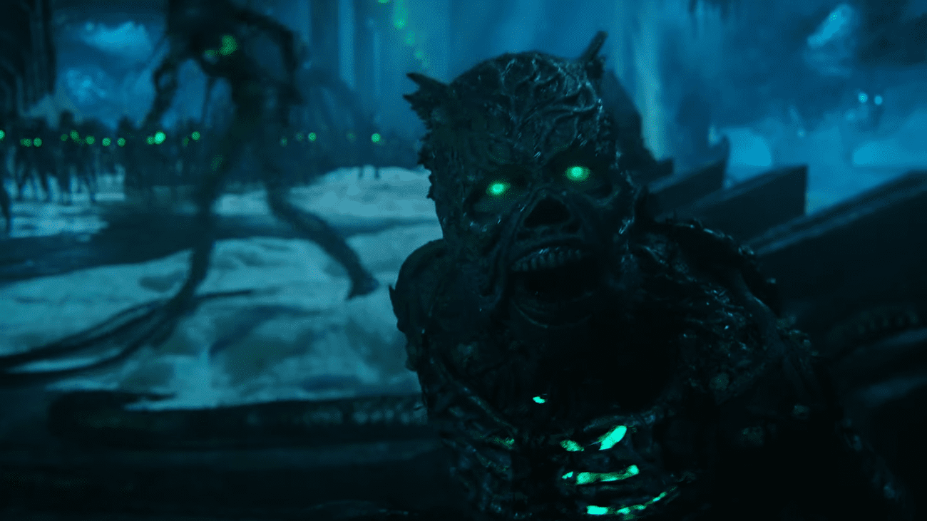 Πώς λοιπόν όλα αυτά μεταφράζονται στην ιστορία της ταινία; Λοιπόν, η θεωρία μας είναι ότι αυτός ο μυστηριώδης κακός είναι μια νέα εκδοχή του Dead King από τα κόμικς, ο οποίος προφανώς δεν είναι ο Βασιλιάς Atlan (γιατί ο Atlan στέκεται ακριβώς απέναντί του). Αντί να ξυπνήσει στο παρόν από έναν αρχαίο λήθαργο όπως στα κόμικς, ο νέος κακός κληροδοτεί τη δύναμή του και τον έλεγχο του στρατού του στον Black Manta μέσω αυτής της νέας Μαύρης Τρίαινας, η οποία δημιουργήθηκε για τις ανάγκες της ταινίας. Βασικά, το νέο “Aquaman” παίρνει όλα τα ωραία πράγματα από την ιστορία του Dead King, τα αναμειγνύει και τα δίνει στον Black Manta για να τον κάνουν τον πιο δυνατό αντίπαλο που ο Arthur έχει αντιμετωπίσει ως τώρα.