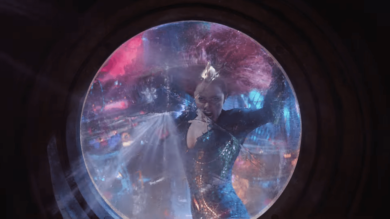 Στη συνέχεια, υπάρχει μια αλληλουχία σκηνών δράσης, όπου σε κάποια φάση βλέπουμε τη Mera να προσπαθεί, οργισμένη, να σπάσει ένα γυάλινο παράθυρο. Πόσο στοίχημα βάζετε ότι στην άλλη πλευρά αυτού του παραθύρου βρίσκεται το Aquababy και ότι ο Black Manta ετοιμάζεται να το απαγάγει;