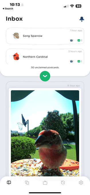 In the initial version of the app, which I tested, these photos and videos were sent through as cute “postcards” you would tap to open. The design was adorable as each opening included a bit of fanfare — and when a new bird visited, there would be a bit of a celebration alongside your first look. You’d then swipe left or right, Tinder-style, to save or discard photos and could opt to save or delete the photo or video entirely, if it wasn’t one you wanted to keep or share.