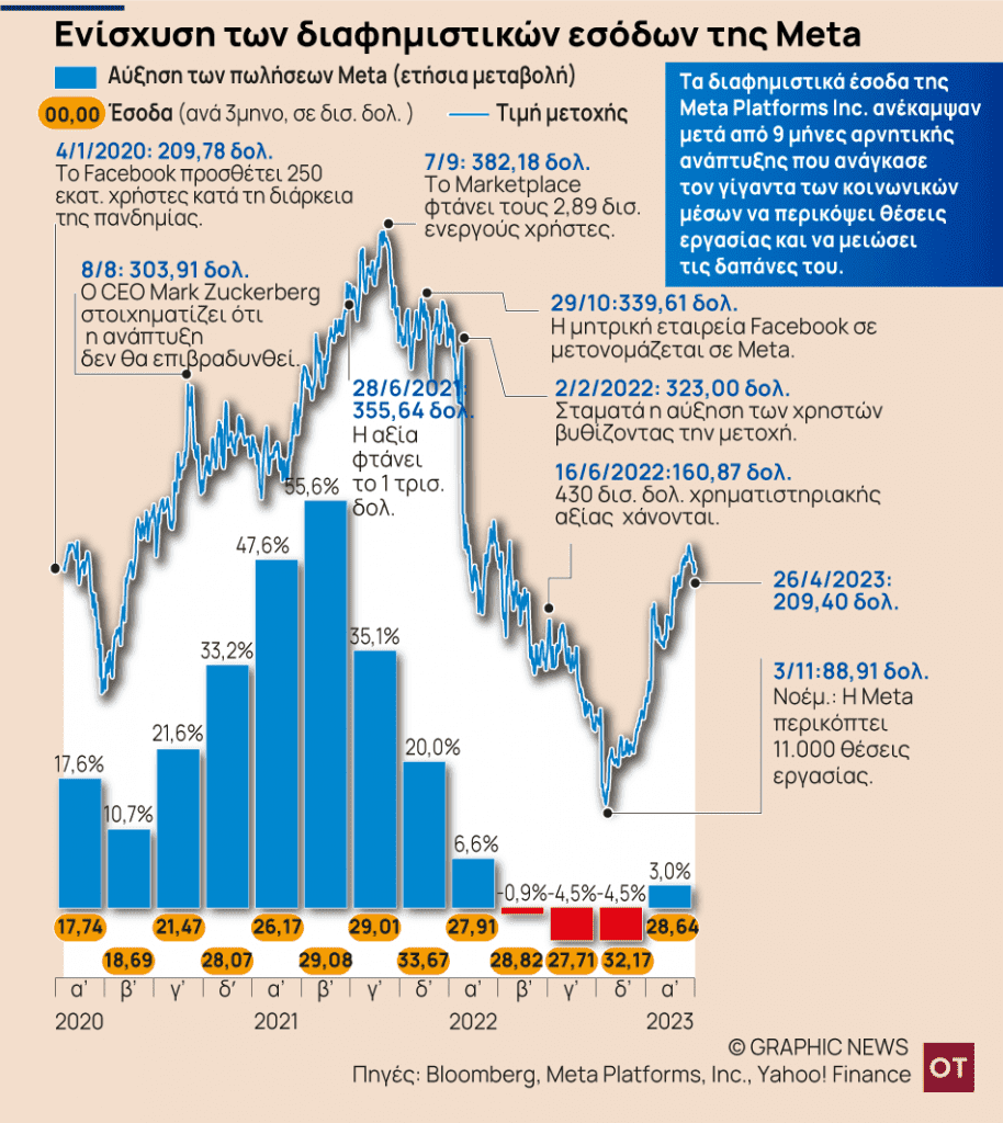 Παρόλα αυτά, η μετοχή της Meta ανέβηκε 135,5% στα 209,40 δολάρια στο κλείσιμο την Τετάρτη, από το χαμηλότερο σημείο των 88,91 δολαρίων του Νοεμβρίου.