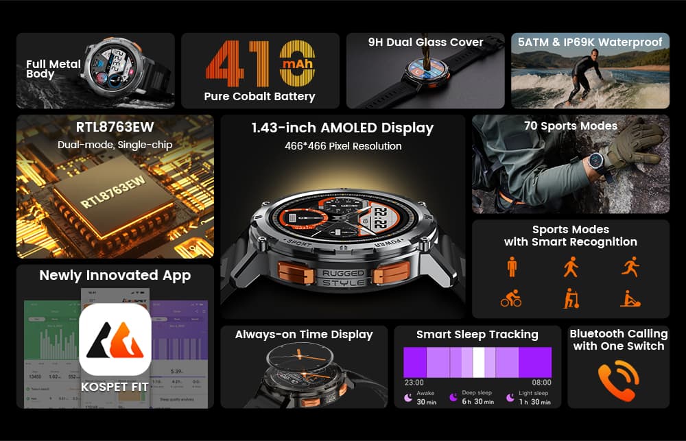 Για όσους αναζητούν ένα έξυπνο ρολόι που μπορεί να αντέξει στις πιο σκληρές συνθήκες, το Kospet Tank S1 είναι ένα πραγματικό θαύμα. Σχεδιασμένο με έμφαση στην ανθεκτικότητα και την ευελιξία, το Tank S1 προσφέρει εξαιρετικά χαρακτηριστικά που το καθιστούν ιδανικό σύντροφο για υπαίθριες περιπέτειες.