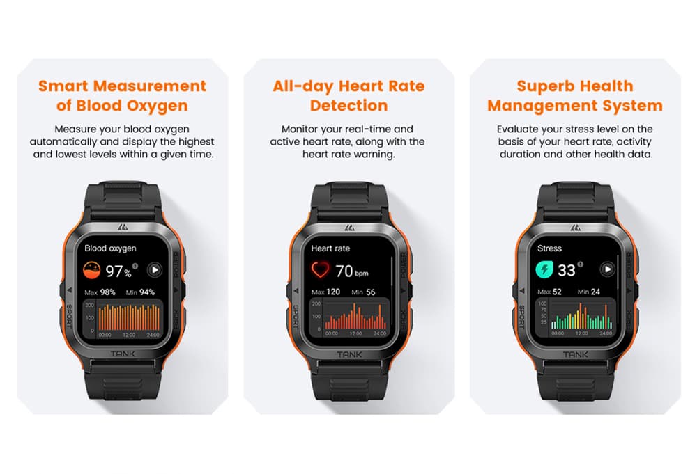 Kospet Tank Series με καρδιακούς παλμούς, οθόνη οξυγόνου αίματος, αντίσταση σε βαθιά νερά και πιστοποίηση US MIL