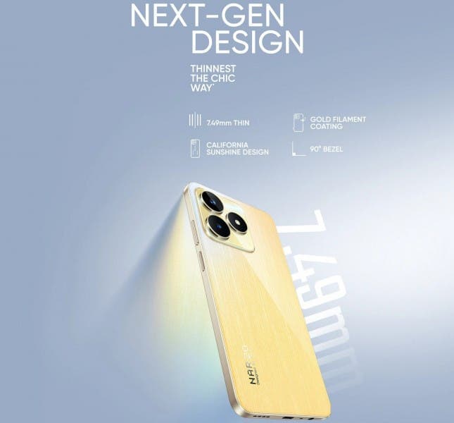 Το Realme Narzo N53 διαφημίζεται ως “Ο επαναπροσδιοριστής του οικονομικού μοντέλου” που διαθέτει “εκπληκτική σχεδίαση, ισχυρή απόδοση και προηγμένα χαρακτηριστικά”. Και ενώ η εταιρεία δεν έχει αναφέρει λεπτομερώς το φύλλο προδιαγραφών του Narzo N53, αποκάλυψε τη σχεδίαση και τις βασικές προδιαγραφές του τηλεφώνου.