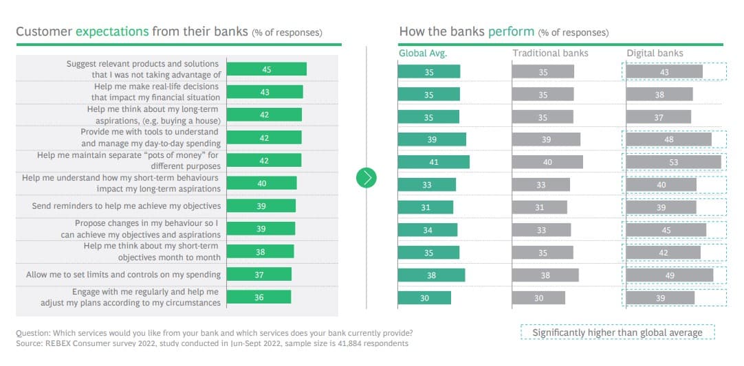 σοί καταναλωτές (43%), παγκοσμίως, δηλώνουν ότι οι ψηφιακές τράπεζες προσφέρουν καλύτερες εμπειρίες εφαρμογών