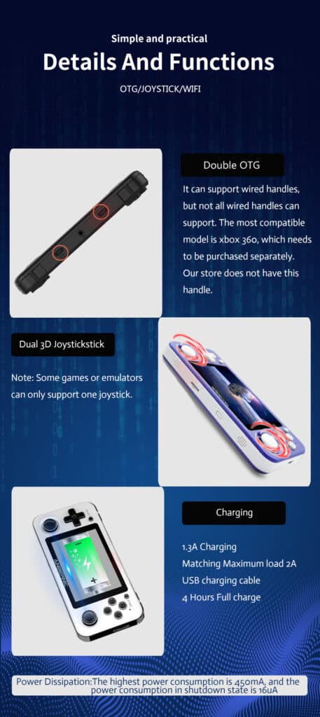 Εκτός αυτού θα βρείτε συνολικά δύο αναλογικούς μοχλούς, 4 κουμπιά μπροστά, 4 Shoulder buttons, και τα κλασσικά Start/Select, με το RG351P να προβάλει τα παιχνίδια  σε μια οθόνη 3.5″ με ανάλυση 320×480 pixels και ολεοφοβική επίστρωση.