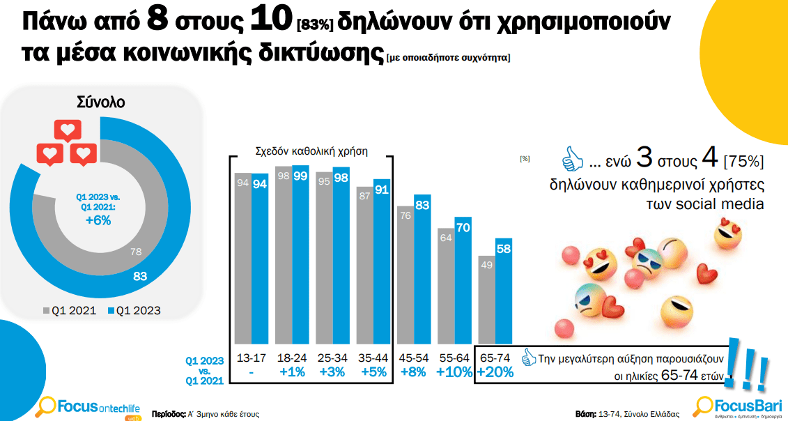 Πάνω από 8 στους 10 Έλληνες χρησιμοποιούν τα κοινωνικά δίκτυα, και πάνω από 7 στους 10 πραγματοποιούν ηλεκτρονικές αγορές
