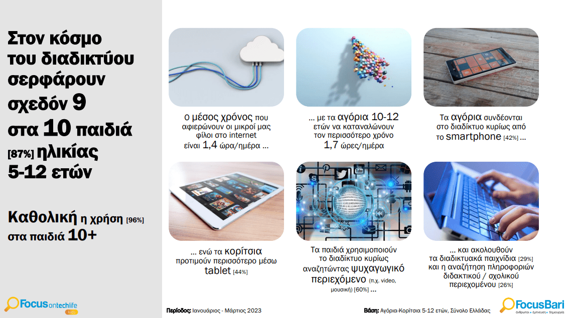 Σχεδόν 9 στα 10 παιδιά 5-12 χρόνων μπαίνουν στο internet είτε μέσω κινητού, είτε μέσω tablet