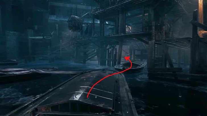 - Βήμα 1 – The Remnant II: The Awakened King DLC λαμβάνει χώρα στο Losomn, ξεκινώντας σε μια νέα περιοχή γνωστή ως Forlorn Coast. Αυτή η περιοχή είναι αρκετά περίπλοκη, με στριμμένο σχέδιο και πολλά μονοπάτια που επικαλύπτονται. Προχωρήστε μέχρι να φτάσετε σε μια περιοχή που ονομάζεται “Drowned Wen”. Πιέστε προς τα εμπρός και τελικά θα φτάσετε σε ένα υδάτινο κανάλι που περνά από το κέντρο της περιοχής Forlorn Coast. Συνεχίστε και θα παρατηρήσετε μια σειρά από βάρκες που κατευθύνονται κάτω από ένα διάδρομο. Πήδα από τη μια βάρκα στην άλλη.