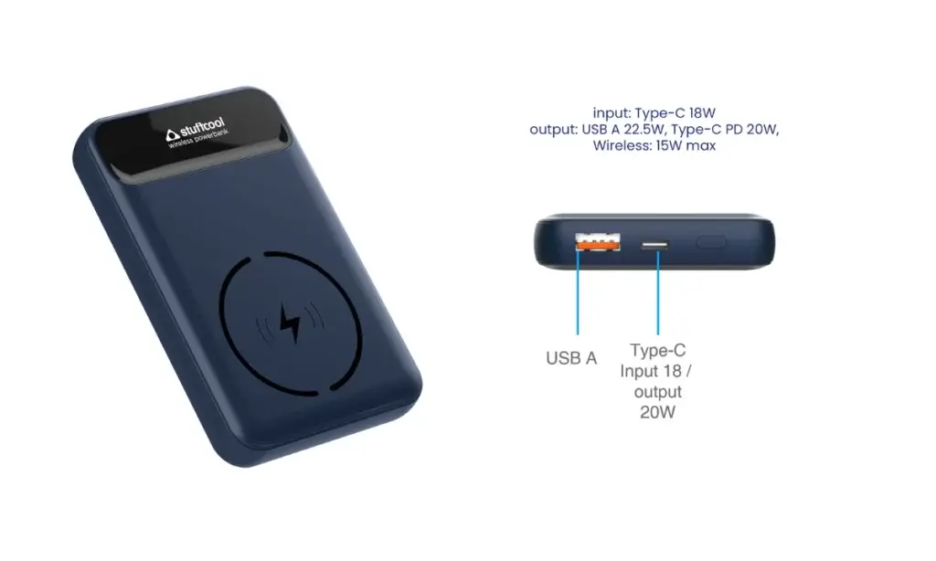 Αυτό το power bank έχει τιμή 3.499 και ανήκει στη μάρκα Stuffcool. Η μαγνητική του φόρτιση είναι πιο γρήγορη και κολλάει στο τηλέφωνο.