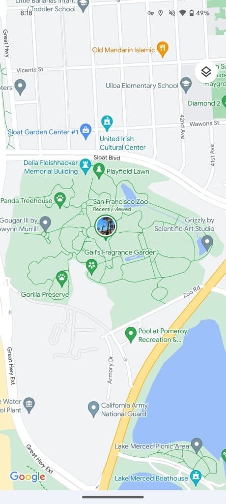 Οι αυτοκινητόδρομοι είναι πολύ πιο σκούρο γκρι, με κάποιες μπλε αποχρώσεις, για μια ωραία θεματική συνέπεια με τους δρόμους. Είναι μεγάλη διαφορά από το μαύρισμα που γνωρίζουμε, αλλά ξεχωρίζει λιγότερο σε σχέση με το νερό όπου χρησιμοποιείται πιο ανοιχτό μπλε. Εν τω μεταξύ, με λιγότερο κίτρινο, οι πορτοκαλί καρφίτσες για εστιατόρια ξεχωρίζουν πολύ περισσότερο.