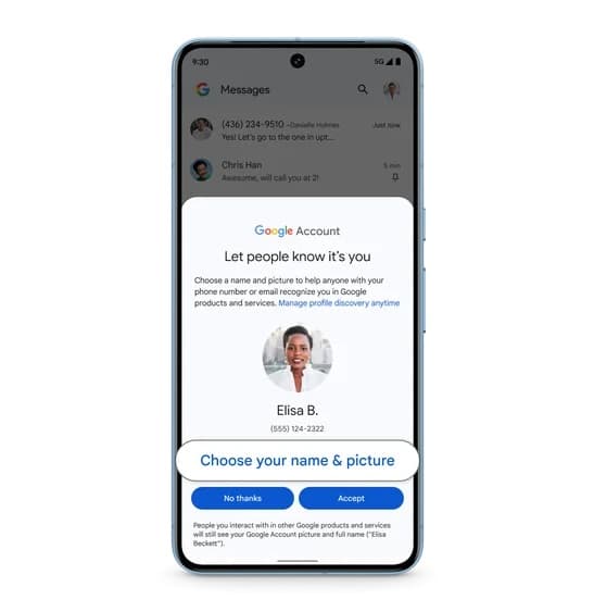 Τελευταίο αλλά εξίσου σημαντικό, το Google Messages αποκτά επίσημα τη λειτουργία προφίλ, η οποία έχει εμφανιστεί αρκετές φορές στο παρελθόν. Η λειτουργία είναι απλή, καθώς θα σας επιτρέψει να ορίσετε το όνομα του προφίλ σας, την εικόνα και τον αριθμό τηλεφώνου σας. Το προφίλ θα συγχρονιστεί σε όλες τις υπηρεσίες της Google, επομένως είστε τυχεροί γιατί δεν θα χρειαστεί να συνεχίσετε να αλλάζετε το προφίλ.