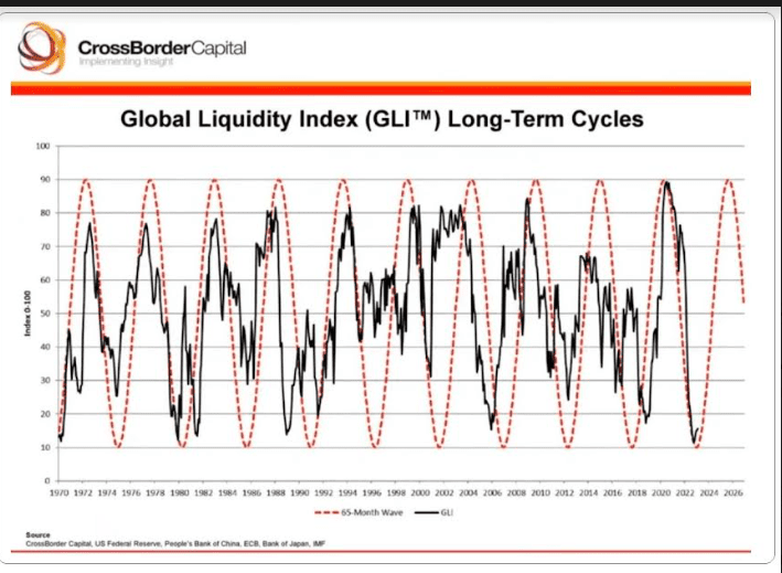 Αν η ρευστότητα συνεχίσει να είναι η βασική μεταβλητή που καθορίζει την κατεύθυνση των αγορών, τότε θα πρέπει να λάβουμε υπόψη μας ένα άλλο διάγραμμα, όπου όχι μόνο φανερώνει πως υφίσταται περιοδικότητα στη ρευστότητα, αλλά και ότι είμαστε