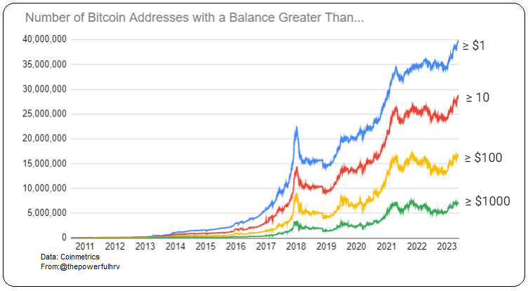 Σύμφωνα με τα στοιχεία της Coinmetrics, έφτασαν τις 40 εκατομμύρια διευθύνσεις όπου κατέχουν έστω και ελάχιστη ποσότητα Bitcoin, καταγράφοντας