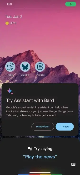 Google θα σας δώσει μια προτροπή να σας ζητήσει να δοκιμάσετε το Assistant with Bard. Αυτό δείχνει ότι η εταιρεία είναι πραγματικά δεσμευμένη να διασφαλίσει ότι όλο και περισσότεροι χρήστες θα κάνουν πραγματικά τη μετάβαση προς αυτόν τον