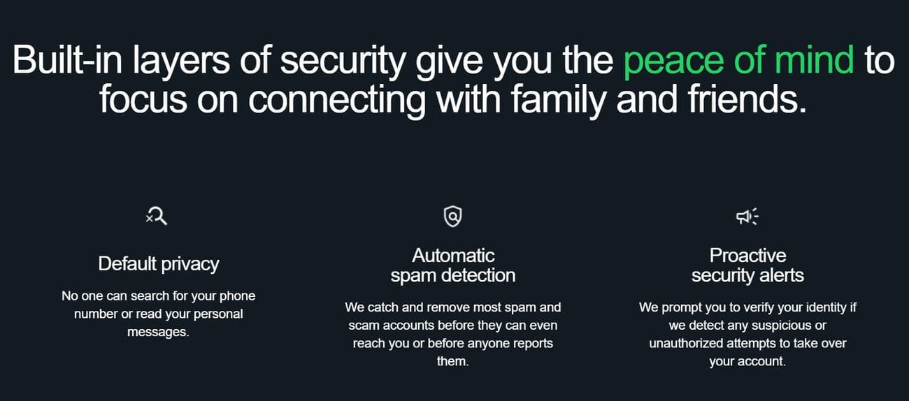Το WhatsApp προτρέπει επίσης τους χρήστες να είναι πιο προληπτικοί σχετικά με την ασφάλειά τους στο διαδίκτυο και να γνωρίζουν τα βήματα που μπορούν να λάβουν για να ασφαλιστούν από απάτες, απάτες και παραβιάσεις ασφάλειας. Οι χρήστες μπορούν να ενεργοποιήσουν την επαλήθευση σε δύο βήματα προσθέτοντας έναν επιπλέον εξαψήφιο pin που θα ζητηθεί πριν από τη μετάβαση σε ένα νέο τηλέφωνο. Μπορούν επίσης να αναφέρουν ύποπτες απάτες και προβληματικές συμπεριφορές από άλλους χρήστες.