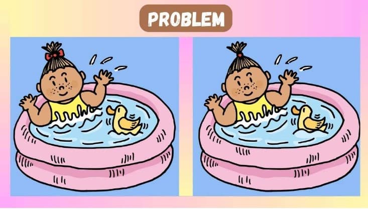 σε μία πλαστική πισίνα. Οι εικόνες φαίνονται σχεδόν ίδιες, αλλά υπάρχουν 3 διαφορές μεταξύ τους.