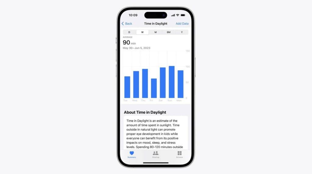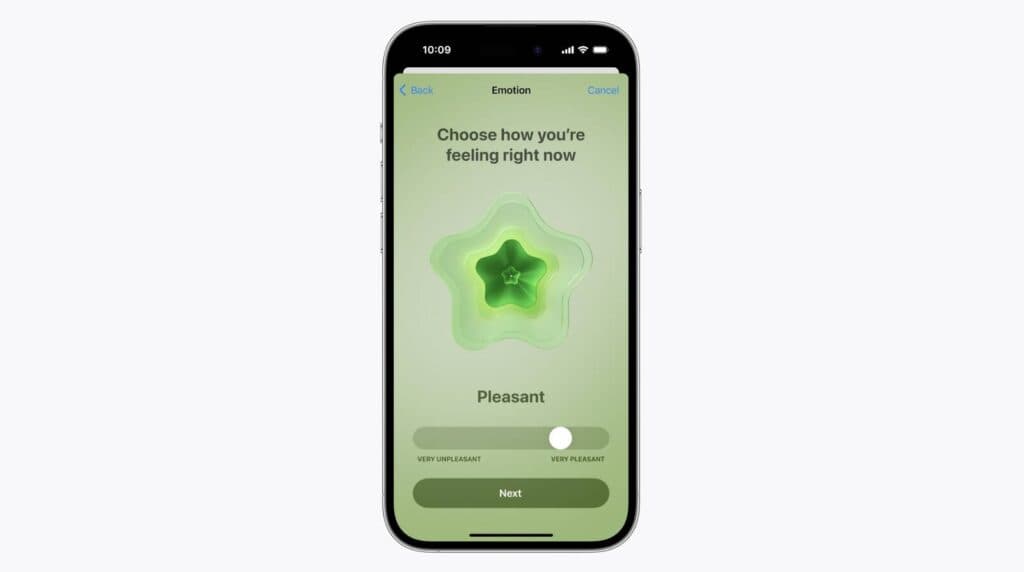 Μια νέα δυνατότητα παρακολούθησης διάθεσης στην εφαρμογή Mindfulness επιτρέπει στους χρήστες να κάνουν κύλιση σε μια επιλογή από διαθέσεις και μετρήσεις καταγραφής. Στη συνέχεια, η εφαρμογή Health θα παρέχει πληροφορίες με βάση αυτά τα δεδομένα στο iPhone. Μια νέα δυνατότητα επιδιώκει να μειώσει τον κίνδυνο μυωπίας χρησιμοποιώντας τον αισθητήρα φωτός περιβάλλοντος για την εμφάνιση της ώρας στο φως της ημέρας, η οποία εμφανίζεται επίσης στην εφαρμογή Υγεία.
