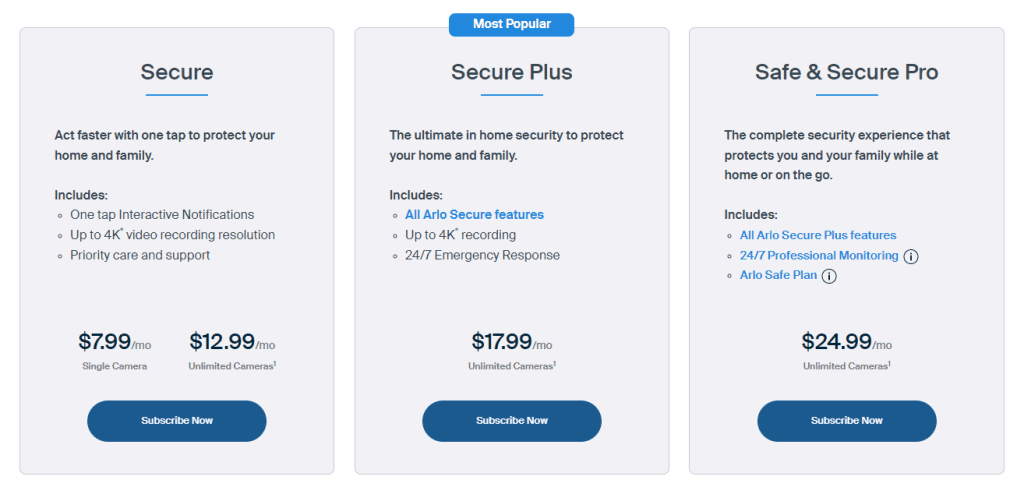 Επί του παρόντος, η Arlo προσφέρει δύο σχέδια αποθήκευσης cloud για τις κάμερές της. Υπάρχει ένα πρόγραμμα με μία κάμερα και ένα πιο ακριβό πρόγραμμα που υποστηρίζει “απεριόριστες κάμερες”. Αυτό το φθηνότερο σχέδιο, ωστόσο, λαμβάνει σημαντική αύξηση τιμών αυτή τη στιγμή.