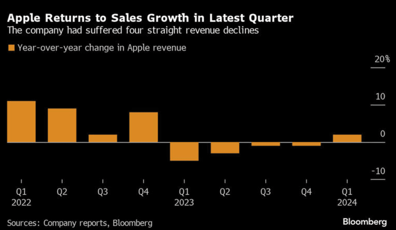 Ο Maestri προειδοποίησε επίσης ότι η αύξηση των πωλήσεων της Apple μπορεί να μην έχει διάρκεια. Το τρέχον τρίμηνο θα έχει μια δύσκολη σύγκριση με την περσινή περίοδο, όταν η ανερχόμενη ζήτηση για το iPhone πρόσθεσε σχεδόν 5 δισεκατομμύρια δολάρια στις πωλήσεις, είπε. Εκείνη την εποχή, η Apple ανέκαμπτε από τους περιορισμούς της αλυσίδας εφοδιασμού που προκλήθηκαν από τα lockdown λόγω Covid στην Κίνα και οι καταναλωτές ζητούσαν διακαώς iPhone.