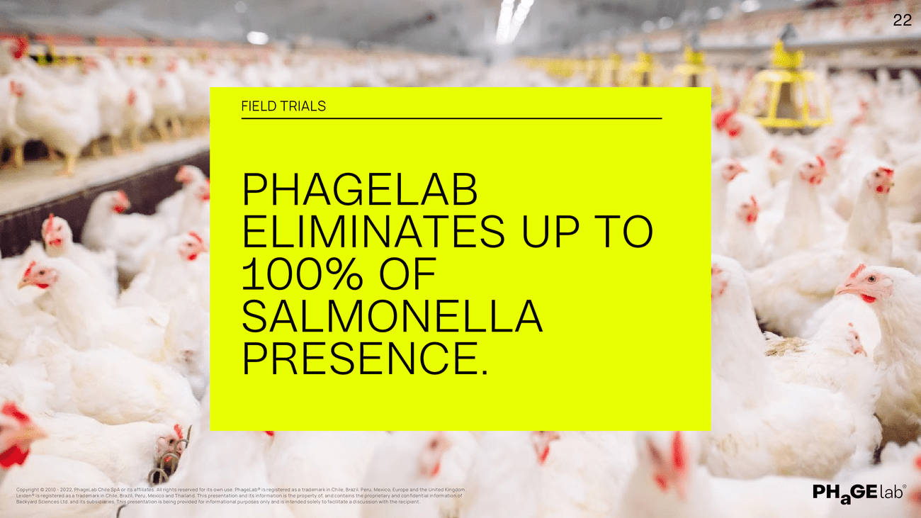 υπάρχει και είναι συχνά στα μέσα ενημέρωσης; Η σαλμονέλα ταιριάζει πολύ καλά. Η εταιρεία έχει κάνει την έρευνά της και πιστεύει ότι μπορεί να αφαιρέσει εντελώς τη σαλμονέλα – ένα τεράστιο και προφανές όφελος για τις αλυσίδες εφοδιασμού τροφίμων.