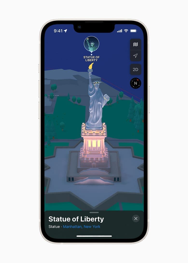Τη νύχτα αυτές οι δομές (και άλλες) λάμπουν στην οθόνη του iPhone. Παρακάτω, το Άγαλμα της Ελευθερίας φωτίζεται με σκοτεινό νυχτερινό φόντο.