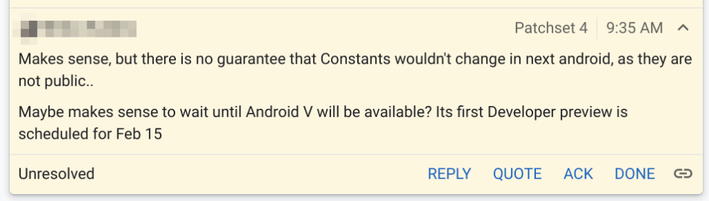 Εάν ισχύει το χρονοδιάγραμμα, η πρώτη προεπισκόπηση προγραμματιστή Android 15 θα φτάσει λίγο περισσότερο από μια εβδομάδα μετά την κυκλοφορία του Android 14 QPR3 Beta 1. Κάπως αξιοσημείωτα, η πρώτη προεπισκόπηση του Android 15 φτάνει αργότερα από την προεπισκόπηση του περασμένου έτους, η οποία κυκλοφόρησε στις 8 Φεβρουαρίου