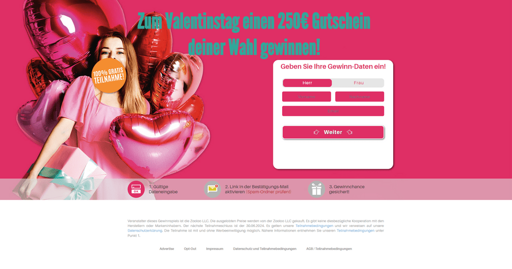 «Θα θέλατε να κάνετε στον αγαπημένο σας μια ξεχωριστή έκπληξη για την Ημέρα του Αγίου Βαλεντίνου; Έχουμε ακριβώς το κατάλληλο για εσάς – την ευκαιρία να κερδίσετε μια δωροεπιταγή αξίας 250 ευρώ της επιλογής σας», αναφέρει το μήνυμα σε μία από τις απάτες.