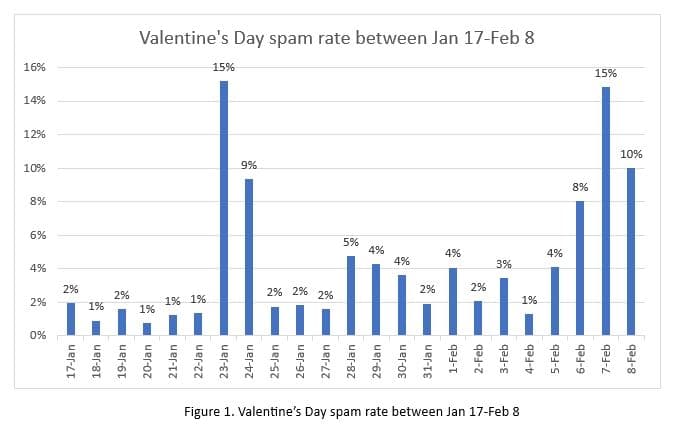 - Αξιοσημείωτες αιχμές ανεπιθύμητης αλληλογραφίας σχετικά με την γιορτή αυτη παρατηρήθηκαν στις 23 και 24 Ιανουαρίου και μεταξύ 6 και 8 Φεβρουαρίου (Σχήμα 1).