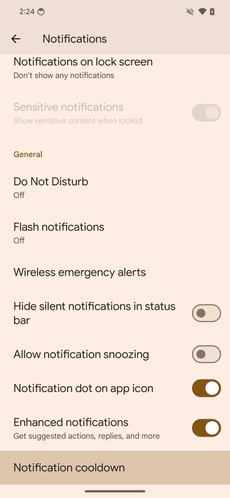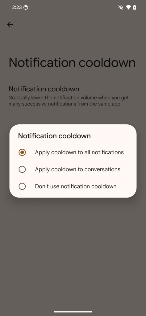 ναλαμβανόμενων ειδοποιήσεων. Μπορείτε να το βρείτε ανοίγοντας την εφαρμογή Ρυθμίσεις και αναζητώντας “Ειδοποίηση cooldown” ή μεταβαίνοντας στις Ρυθμίσεις >