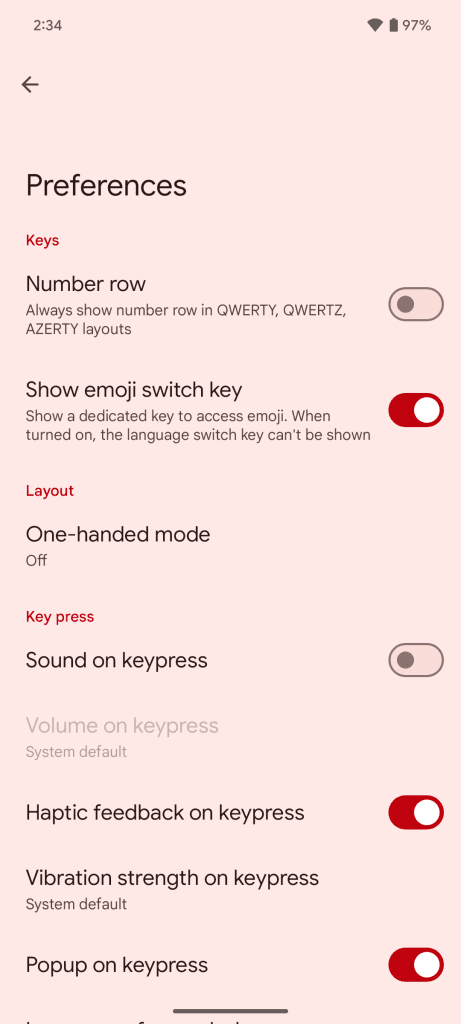 Χρησιμοποιώντας το Gboard ως σημείο αναφοράς, η ρύθμιση της νέας εναλλαγής “Δόνηση πληκτρολογίου” στο Android 15 δεν συγχρονίζεται με την εναλλαγή του Gboard για “Haptic feedback on press”. Η απενεργοποίηση της εναλλαγής συστήματος ενώ η εναλλαγή Gboard είναι ενεργοποιημένη, αφήνει τα απτικά απενεργοποιημένα, ενώ η αντίστροφη θα τα αφήσει απενεργοποιημένα.