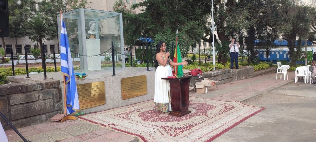 Οι δύο υπουργοί στάθηκαν στην εμβληματική θέση της Αιθιοπίας στην Αφρική, καθώς εδώ έχει βρεθεί ο σκελετός της