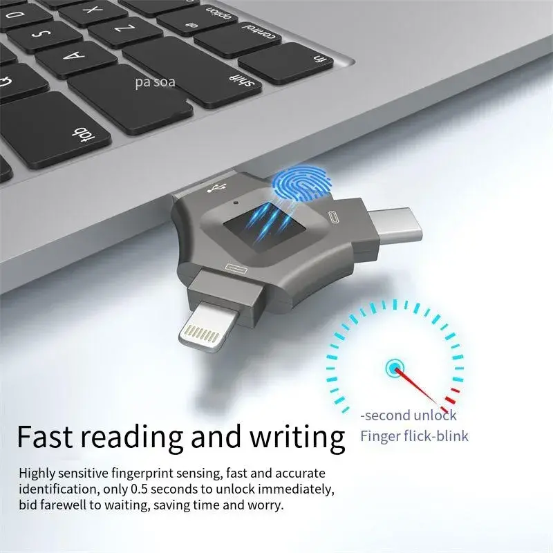 USB Stick 64/128/256GB με τρείς υποδοχές σύνδεσης και βιομετρικό κλείδωμα με αποτύπωμα στα 26€!