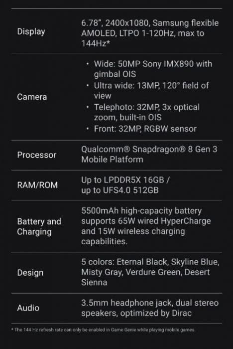 μαζί με 16 GB LPDDR5X και 512 GB αποθήκευσης UFS 4.0. Βλέπουμε επίσης την ίδια τριάδα καμερών που βρίσκεται στο ROG Phone 8 Pro – μια κύρια 50MP με αισθητήρα IMX890, έναν τηλεφακό 32MP με οπτικό ζουμ 3x και έναν φακό Ultrawide 13MP.
