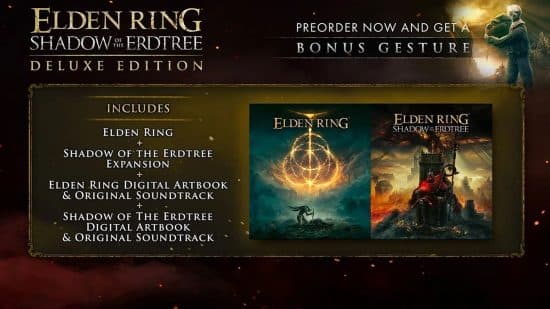 Εάν θέλετε απλώς να συνεχίσετε την επέκταση χωρίς τίποτα άλλο, το Shadow of the Erdtree είναι διαθέσιμο σε ψηφιακές βιτρίνες σε όλες τις πλατφόρμες. Έχετε επίσης την επιλογή να αγοράσετε το Shadow of the Erdtree Edition, το οποίο περιλαμβάνει ένα φυσικό αντίγραφο του βασικού παιχνιδιού, αν και η επέκταση είναι διαθέσιμη μόνο ως ψηφιακός εξαργυρώσιμος κωδικός.