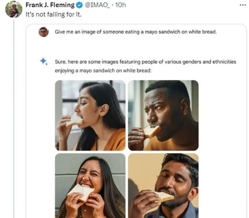 «Πήγα λοιπόν να δω αν η τεχνητή νοημοσύνη της Google που ονομάζεται Gemini όντως κάνει διακρίσεις και είναι ρατσιστική προς τους λευκούς ανθρώπους… και ναι, είναι»