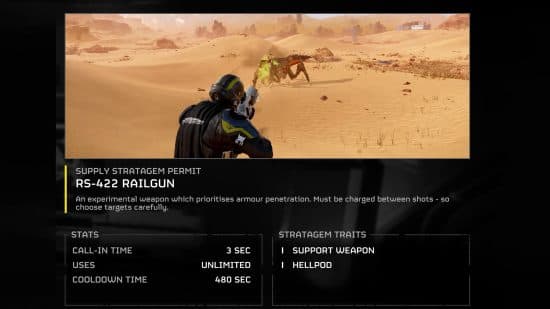 Όταν βρεθείτε να αντιμετωπίζετε μερικές από τις πιο δύσκολες αποστολές στο Helldivers 2, θα συναντήσετε ισχυρούς εχθρούς είτε με τεράστια ποσά υγείας είτε με απίστευτα σκληρή πανοπλία. Εξοπλιστείτε με το Railgun, ένα ισχυρό όπλο που μπορεί να φορτιστεί για να σκοτώσει αμέσως έναν μεγάλο και θωρακισμένο εχθρό με μία μόνο βολή. Αξίζει πάντα να έχετε το Railgun ως επιλογή στο οπλοστάσιό σας, καθώς πρόκειται να αντιμετωπίσετε ισχυρούς εχθρούς που απαιτούν ένα κορυφαίο όπλο για να τους νικήσετε.