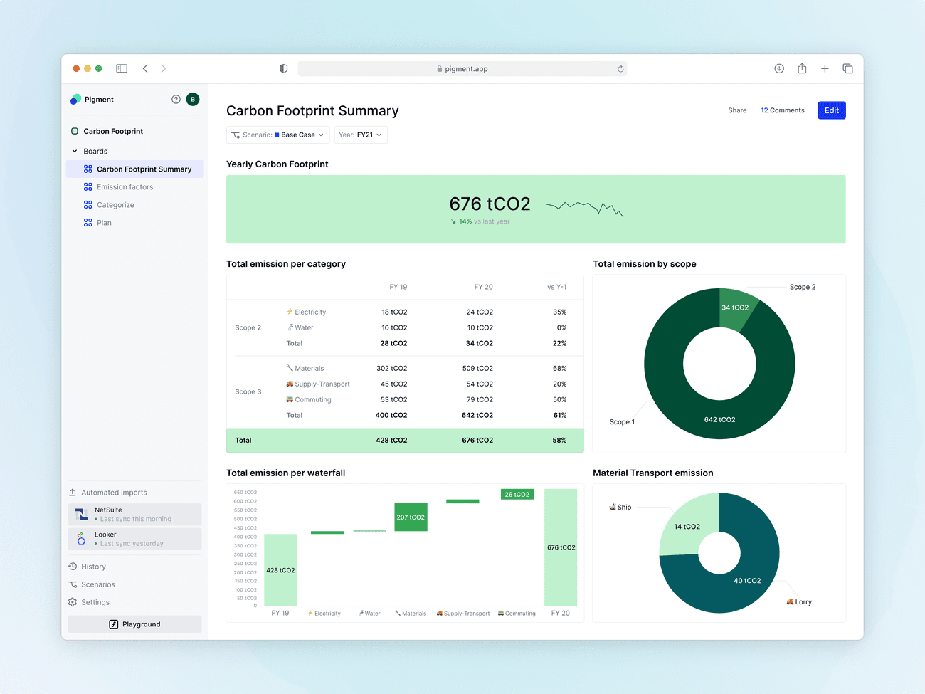 Ακριβώς όπως το Microsoft Excel, το Pigment θέλει να είναι ένα γενικό εργαλείο. Εάν θέλετε να το χρησιμοποιήσετε για λογιστική καταγραφή άνθρακα και να παρακολουθείτε τις συνολικές εκπομπές σας, μπορείτε να ξεκινήσετε την εισαγωγή δεδομένων και να δημιουργήσετε έναν πίνακα εργαλείων για αυτήν την περίπτωση χρήσης. Το Pigment πρόσθεσε επίσης πρόσφατα μια νέα προβολή υπολογιστικού φύλλου, έτσι ώστε οι χρήστες του Excel να νιώθουν σαν στο σπίτι τους όταν πληκτρολογούν τύπους.