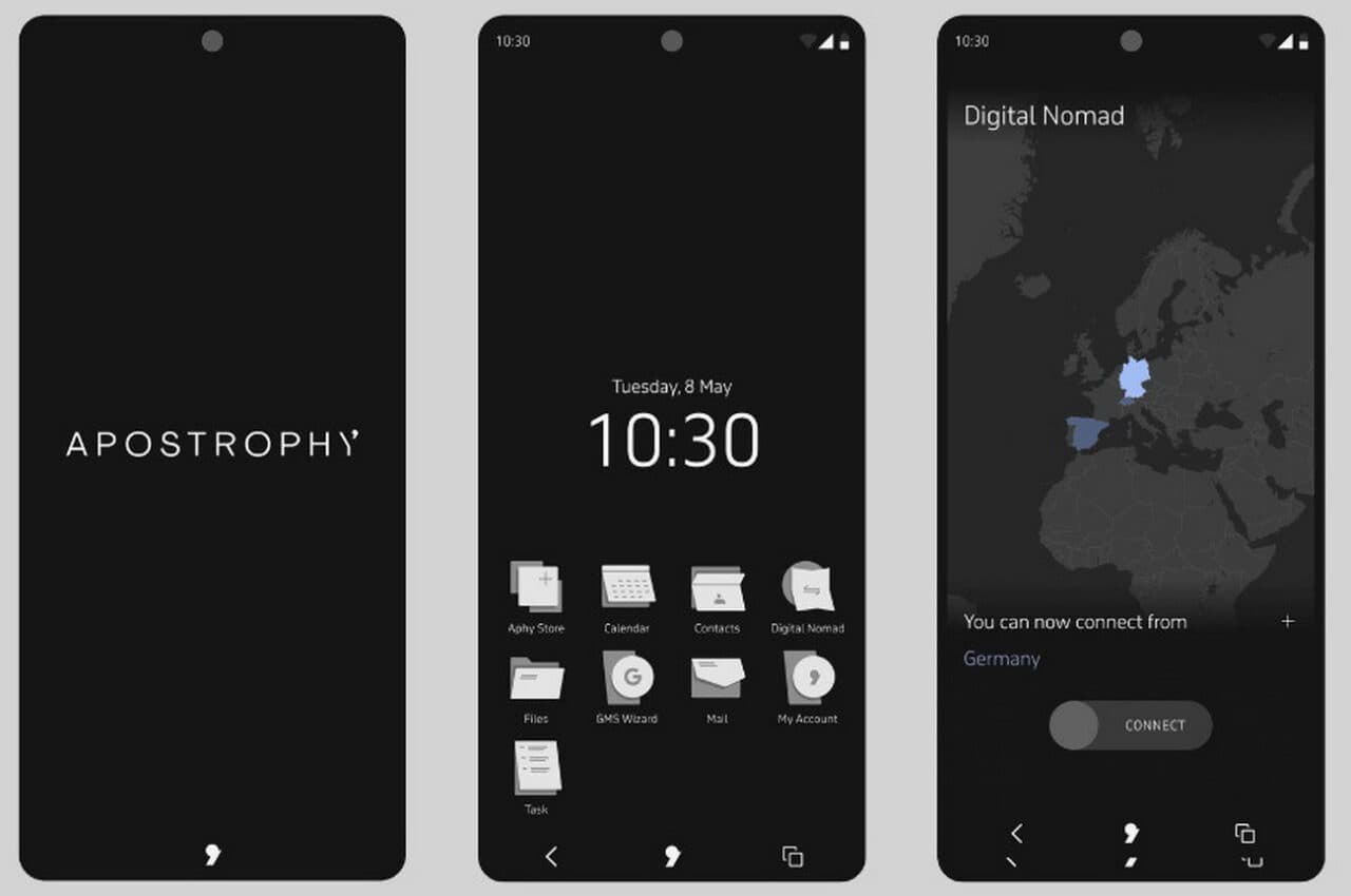 OS, ένα άλλο λειτουργικό ασφαλείας για το οποίο ίσως να έχετε ακούσει στο παρελθόν. Το Apostrophy βασίζεται στα θεμέλια του Graphene OS και προσθέτει τις δικές του ασφαλείς εφαρμογές στο τηλέφωνο, όπως επαφές, αποθήκευση, ηλεκτρονικό ταχυδρομείο,