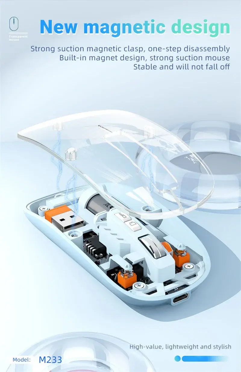 Αν κάτι έχει το HXSJ M233, είναι στυλ, αφού το ποντίκι της Κινέζικης εταιρίας, είναι το πρώτο ΔΙΑΦΑΝΟ ποντίκι που βλέπω, με το πάνω μέρος του να σας δίνει μια ξεκάθαρη εικόνα του εσωτερικού του, και να συνδέεται με το υπόλοιπο σώμα μαγνητικά, αφού μπορείτε να το αφαιρέσετε για να αλλάξετε τη