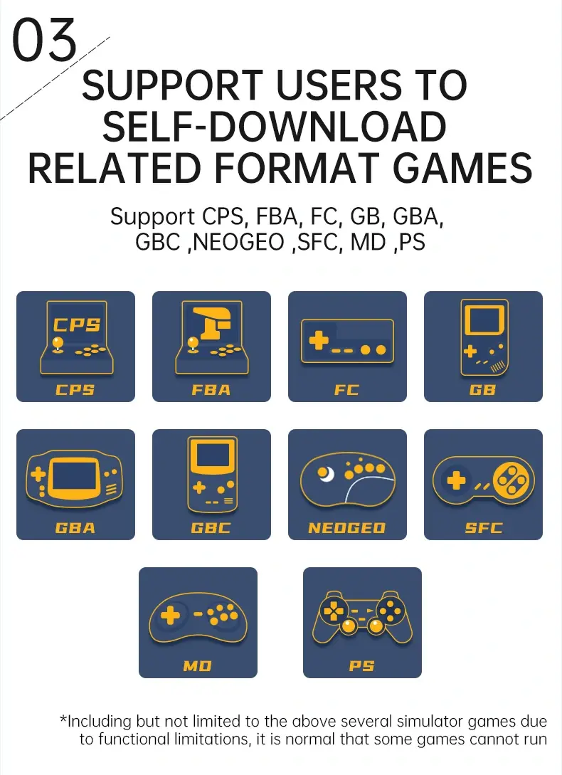 στη συσκευή, για κονσόλες όπως Mame, Gameboys, Neogeo, Super Nintendo, NES, και Playstation 1.