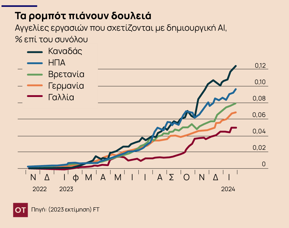 . Οι επιχειρήσεις σε όλο τον κόσμο, από τράπεζες και συμβουλευτικές εταιρείες μέχρι κινηματογραφικά στούντιο, πρέπει να αρχίσουν να χρησιμοποιούν σε μεγάλη κλίμακα εργαλεία που μοιάζουν με το ChatGPT. Όταν πρόκειται για την υιοθέτηση στον πραγματικό κόσμο μιας τέτοιας «παραγωγικής» τεχνητής νοημοσύνης, οι εταιρείες βαδίζουν προσεκτικά. Ωστόσο, ακόμη και αυτά τα μικρά βήματα υποδηλώνουν την αλλαγή της φύσης της εργασίας των υπαλλήλων.