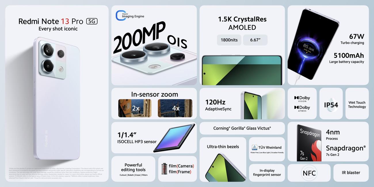 Zhrnutie kľúčových špecifikácií Redmi Note 13 Pro 5G: