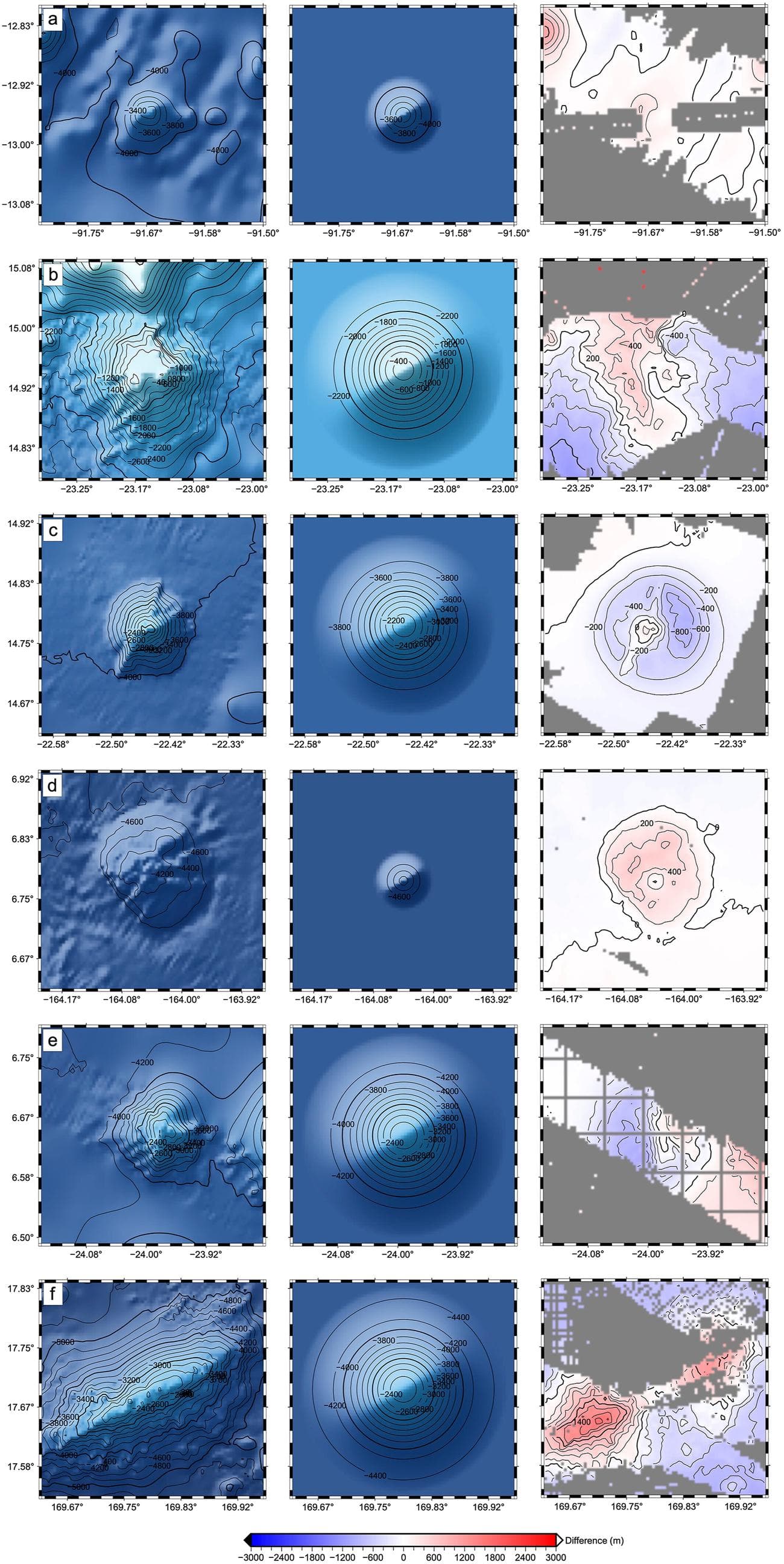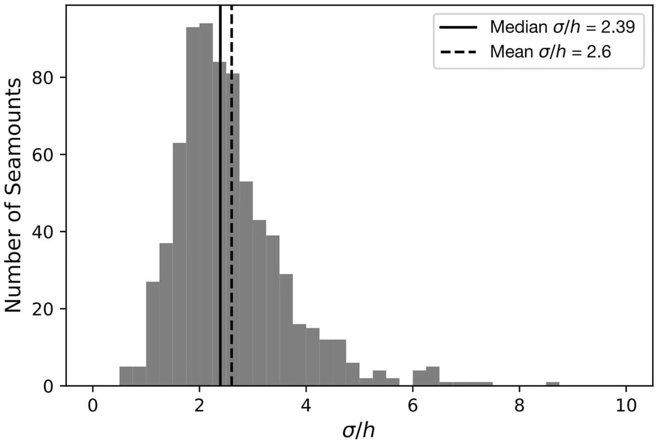 Μερικά από τα ηφαίστεια υψώνονται από 3 έως και 10 χιλιόμετρα από τον πυθμένα. Είναι μεν εύκολο να εντοπιστούν από κάποιο σόναρ σκάφους, αλλά μόνο αν το σκάφος περάσει από πάνω του. Ηφαίστεια μικρότερα των 2 χιλιομέτρων είναι ακόμα πιο δύσκολο να εντοπιστούν και έτσι την τελευταία δεκαετία οι ερευνητές έχουν στραφεί στα δορυφορικά δεδομένα για να τα εντοπίσουν.