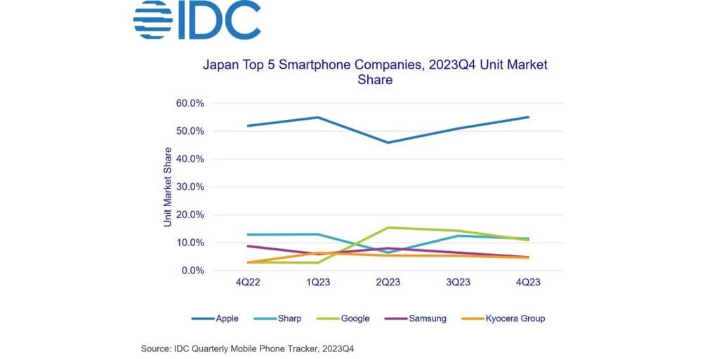 σημειώνει ότι η Sharp διατηρεί μεγάλο μερίδιο της αγοράς λόγω της ζήτησης για τηλέφωνα σχεδιασμένα για ηλικιωμένους, όχι απαραίτητα για συσκευές αιχμής. Η Apple, φυσικά, έχει εδώ και καιρό ισχυρή παρουσία στην Ιαπωνία, επομένως το iPhone που βρίσκεται στην κορυφή της σειράς Google Pixel δεν αποτελεί έκπληξη στη χώρα.