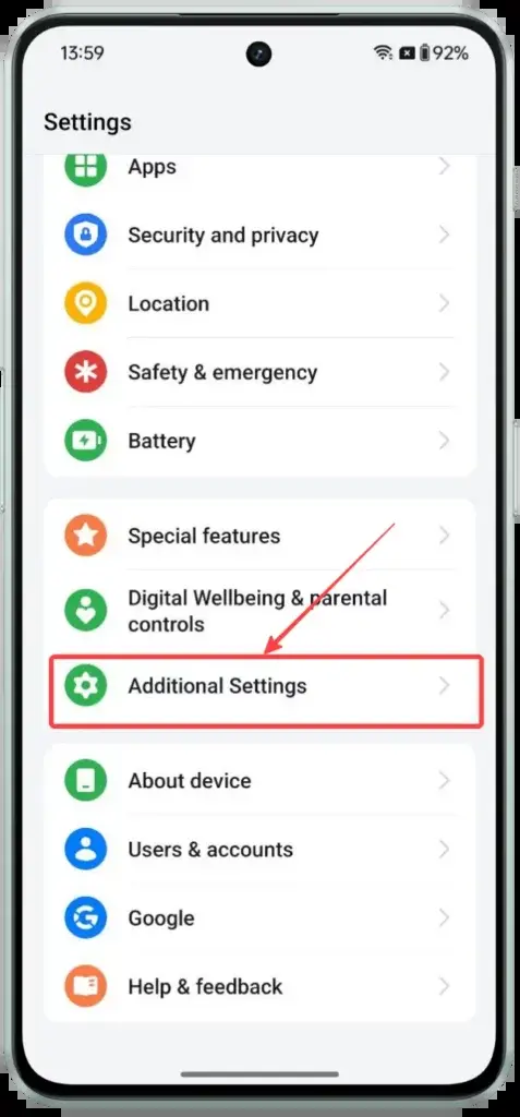 Κάντε κύλιση προς τα κάτω και πατήστε στην καρτέλα Πρόσθετες ρυθμίσεις.