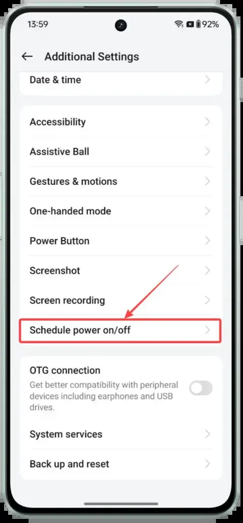 Εδώ, θα δείτε την επιλογή Προγραμματισμός ενεργοποίησης/απενεργοποίησης. απλά αγγίξτε το.