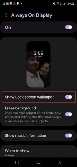 Πιστεύουμε ότι η σύγχυση προέρχεται από το γεγονός ότι δεν υπάρχει ειδική μέθοδος ορισμού μιας προσαρμοσμένης εικόνας ως ταπετσαρίας AOD. Το AOD χρησιμοποιεί απλώς οποιαδήποτε εικόνα βρίσκεται στην οθόνη κλειδώματος. Πρέπει να ορίσετε την επιθυμητή εικόνα ως ταπετσαρία της οθόνης κλειδώματος ώστε το AOD να τη χρησιμοποιεί ως φόντο.
