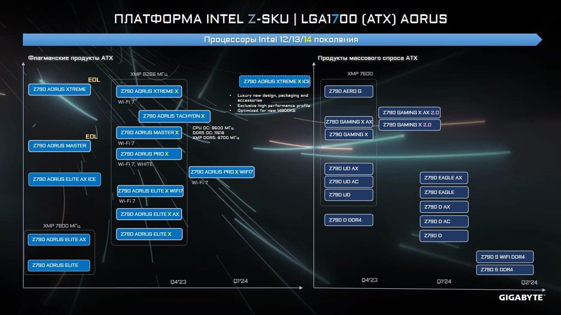 , φαίνεται ότι κατασκευαστές μητρικών πλακών όπως η Gigabyte προετοιμάζουν νέες μητρικές πλακέτες υψηλής τεχνολογίας αποκλειστικά βελτιστοποιημένες για τον επεξεργαστή Intel Core i9-14900KS. Η επερχόμενη μητρική Gigabyte Z790 AORUS Xtreme X ICE θα διαθέτει αποκλειστικά προφίλ απόδοσης και βελτιστοποιήσεις για την ναυαρχίδα της Intel “Special Edition” SKU, επομένως αναμένετε περισσότερες πληροφορίες να κυκλοφορήσουν κοντά στην κυκλοφορία του τσιπ που έχει προγραμματιστεί να κυκλοφορήσει στα ράφια λιανικής την επόμενη εβδομάδα στις 14 του Μαρτίου.